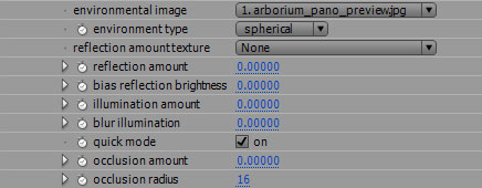 environmental illumination. The environmental illumination is based on panoramic or spherical maps. It includes occlusion